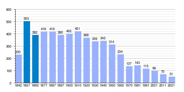 Gráfica de evolución demográfica de Alcubilla de las Peñas[5]​ entre 1842 y 2021