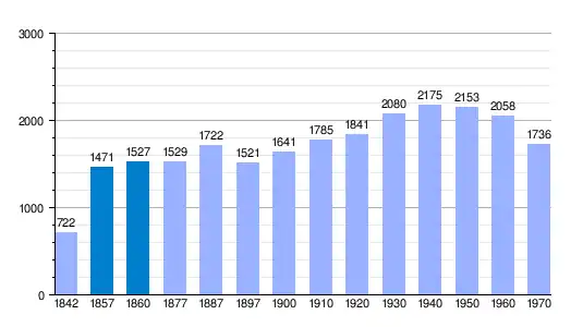| Gráfica de evolución demográfica de Alcudia de Guadix[2] entre 1842 y 1970 |