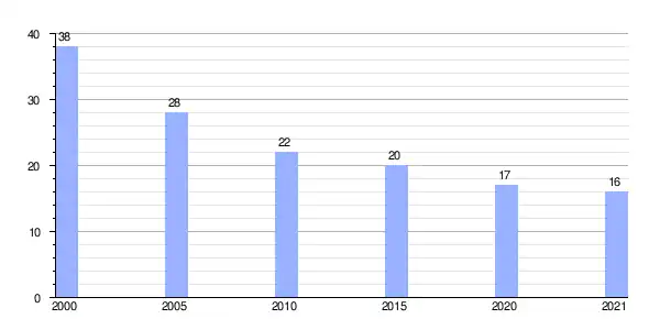 | Gráfica de evolución demográfica de Aldea de Arriba entre 2000 y 2021 |