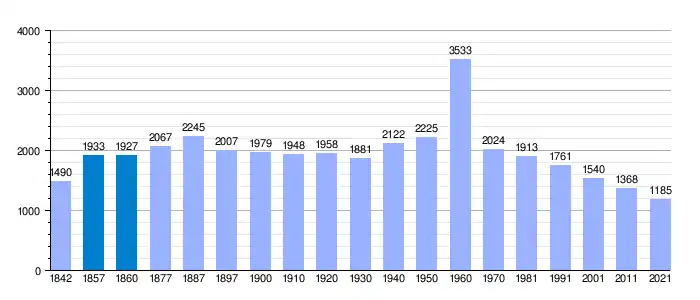 | Gráfica de evolución demográfica de Aldeadávila de la Ribera[24] entre 1842 y 2021 |