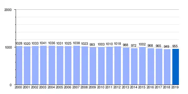 | Gráfica de evolución demográfica de Aldeahermosa[1] entre 2000 y 2019 |