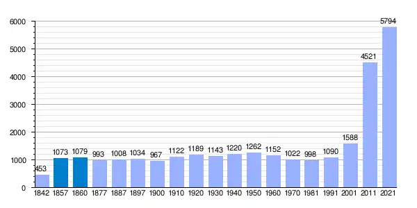| Gráfica de evolución demográfica de Aldeamayor de San Martín[4] entre 1842 y 2021 |
