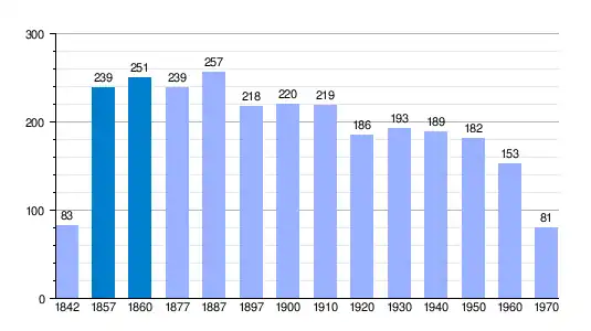 | Gráfica de evolución demográfica de Aldeanueva de Atienza[3] entre 1842 y 1970 |