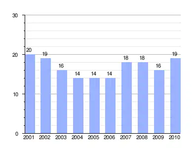 Población de derecho (2001-2010) según los censos de población del INE a 1 de enero de cada año.[3] |