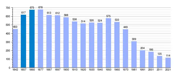 | Gráfica de evolución demográfica de Aldeanueva de Santa Cruz[6] entre 1842 y 2021 |