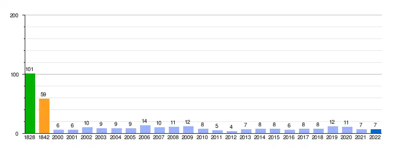Población según el Diccionario geográfico-estadístico de España y Portugal de Sebastián Miñano.[7] Población de derecho (1842 que es población de hecho) según los censos de población del siglo XIX.[8] Población residente (1842-2021) según los censos de población del INE. Población según el padrón municipal de 2022 del INE. |