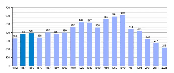 | Gráfica de evolución demográfica de Aldeaseca[5] entre 1842 y 2021 |
