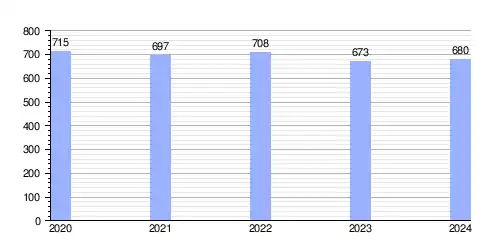 | Gráfica de evolución demográfica de Aldebrő entre 2020 y 2024 |