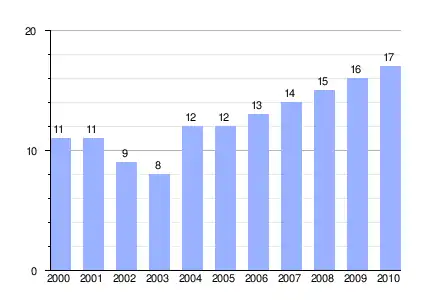 Población de derecho (2000-2010) según los censos de población del INE a 1 de enero de cada año.[6] |