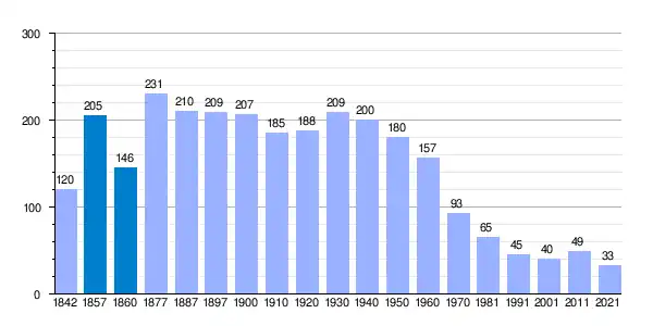 Población de derecho según los censos de población del INE Población de hecho según los censos de población del INEEntre el censo de 1857 y el anterior, crece el término del municipio porque incorpora a 425020 (Canos)[8] |