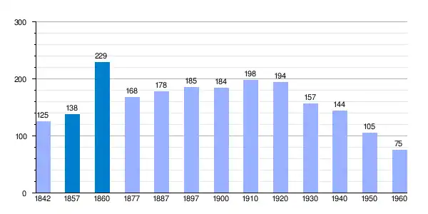 | Gráfica de evolución demográfica de Aldehuela del Rincón[5] entre 1842 y 1960 |
