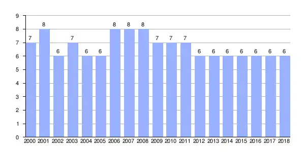 | Gráfica de evolución demográfica de Aldrá entre 2000 y 2018 |