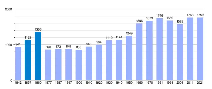 | Gráfica de evolución demográfica de Alegría de Oria[3] entre 1842 y 2021 |