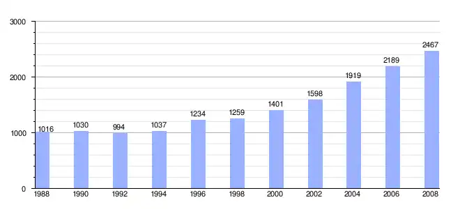 | Gráfica de evolución demográfica de Alegría entre 1988 y 2008 |