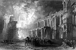 Los sucesos que ocurrieron en mayo y junio de 1390 en Laich of Moray fueron tal vez el resultado de una serie de factores que se acumularon. Primero, los terratenientes John Dunbar, conde de Moray, y David Lindsay de Glenesk, se ausentaron de Moray para asistir a un importante torneo en la corte de Ricardo II de Inglaterra.[31] Además, la participación del obispo Bur en la separación de Alejandro y su esposa, así como su alianza con el conde de Moray, generaron un sentimiento de venganza en Alejandro que culminó con la destrucción de Forres en mayo y la de Elgin y su catedral en junio.[33] La destrucción de las posesiones de la iglesia en Elgin fue completa: la catedral, el monasterio de Greyfriars, la parroquia de San Giles y el hospital Maison Dieu quedaron arrasados por el fuego.[34] Después de estos hechos, el estado y la Iglesia se unieron contra él: excomulgado por Bur, Alejandro tuvo que personarse en la iglesia de los Predicadores de Perth, en presencia de sus hermanos, el rey Roberto III de Escocia y el duque de Albany, y ante el consejo general, para rogar su perdón. La absolución le fue concedida por Walter Trail, obispo de St Andrews.