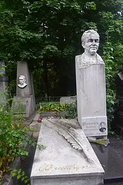 Aleksandr Korneichuk murió el 14 de mayo de 1972 en Kiev en la RSS de Ucrania y fue enterrado en el cementerio de Báikove.[7]