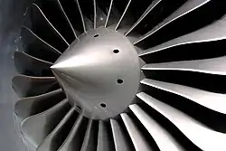 Las aletas en forma de lámina generan empuje cuando se mueven, la elevación de la aleta pone en movimiento el agua o el aire y empuja la aleta en la dirección opuesta. Los animales acuáticos consiguen un empuje significativo moviendo las aletas hacia delante y hacia atrás en el agua. A menudo se utiliza la aleta caudal, pero algunos animales acuáticos generan empuje con las aletas pectorales. Las aletas también pueden generar empuje si giran en el aire o en el agua. Las turbinas y las hélices (y a veces los ventiladores y las bombas) utilizan una serie de aletas giratorias, también llamadas láminas, alas, brazos o palas. Las hélices utilizan las aletas para transformar la fuerza de torsión en empuje lateral, propulsando así una aeronave o un buque.[4] Las turbinas funcionan a la inversa, utilizando la elevación de las palas para generar par y potencia a partir de gases o agua en movimiento.[5]