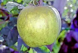 - ↑ Hampson, Cheryl R.; Kemp, Henk (2003). Apples. Botany, Production and Uses, ed. Characteristics of Important Commercial Apple Cultivars. CABI Publishing. pp. 62. ISBN 0-85199-592-6.