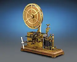 Tras el descubrimiento de electromagnetismo por Hans Christian Ørsted en 1820 y la invención del Electroimán por William Sturgeon en 1824, hubo desarrollos en telegrafía electromagnética en Europa y América. Pulsos de corriente eléctrica eran enviados a lo largo de cables para controlar un electroimán en el instrumento receptor. Muchos de los primeros sistemas de telégrafo utilizaban un sistema de aguja única que daba un instrumento muy simple y robusto. Sin embargo, era lento, ya que el operador receptor tenía que alternar entre mirar la aguja y escribir el mensaje. En el código Morse, una desviación de la aguja a la izquierda correspondía a un «dit» y una deflexión a la derecha a un «dah».[2] Al hacer que los dos clics sonasen diferentes con un tope de marfil y otro de metal, el dispositivo de una sola aguja se convirtió en un instrumento audible, lo que llevó a su vez al sistema de telégrafo sonoro de doble placa.[3]