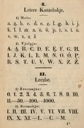 ![]() Versión antigua del alfabeto casubio, que se remonta a 1850 | ||