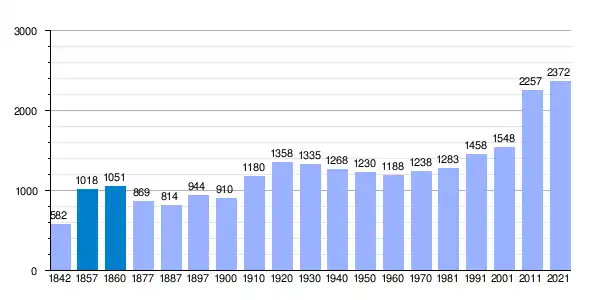 | Gráfica de evolución demográfica de Alfajarín[8] entre 1842 y 2021 |