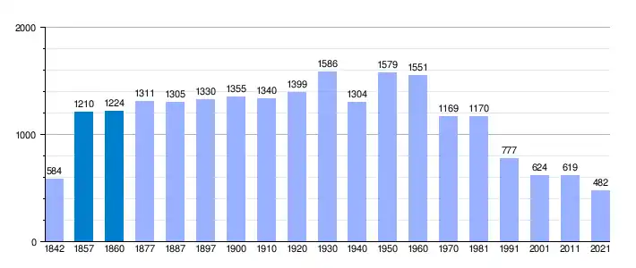 | Gráfica de evolución demográfica de Alfambra[10] entre 1842 y 2021 |