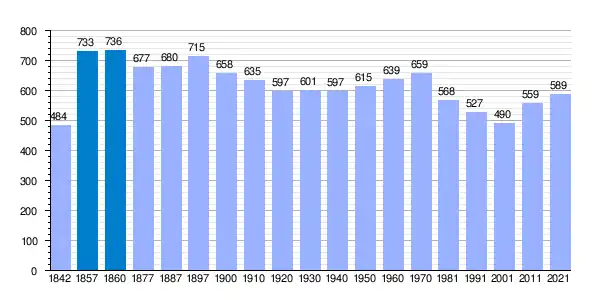 Durante el siglo XVIII aumentó un cien por cien su población y llegó a tener 540 habitantes en 1794, pasando a 736 en 1860. Posteriormente, comenzó un progresivo declive, hasta 1940, año en que volvió a crecer gracias al incremento del regadío a causa de la canalización de las aguas de la Fuente de Arguines. En 1970 la población era de 850 habitantes. Desde esa fecha, la población ha descendido considerablemente. A partir del año 2004, comienza una lenta recuperación del número de habitantes, siendo en el censo de enero de 2009 de 538 habitantes.