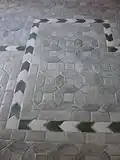 - ↑ Son ejemplares las solerías de pavimentación en algunas estancias de Vall de Crist, datadas entre finales del siglo xiv y comienzos del xv. Se conservan imaginativas combinaciones de varios tipos de «loseta bizcochada» (cuadradas, rectangulares, alfardones exagonales y azulejos octogonales, haciendo composiciones geométricas con las olambrillas decoradas en azul). Sobre un fondo básico de azulejería blanca, listada por una cenefa de color azul cobalto, con chillas y alfardones de tipo vegetal, separados por saetinos, conjunto en el que se combinan tonos rojos, blancos y negros. También hay juegos de alfardones lobulados en alfarje de la armadura del coro (que es de «seis vigas de papo liso y contrapares perfilados con labor de menados a base de alfardones lobulados y chillas estrelladas»).