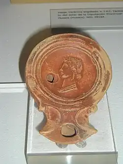 Cuando Hispania cae bajo la potestad de Roma, el oficio de alfarero experimenta un gran desarrollo. No solo llegan a la península grandes cantidades de cerámica, sino también operarios que traen e implantan su técnica y su saber. A partir del siglo I a. C., procedente de la Magna Grecia, se introduce en todo el territorio las primeras vajillas finas y los vasos de colores vivos, piezas que son copiadas en todos los talleres artesanos. Destacan las obras de barniz negro y barniz rojo, con paredes finas y la cubierta vidriada, y los tipos más abundantes son las ánforas, lucernas y vajillas. Las vajillas se realizan en diversas modalidades pero la de terra sigillata es la preferida y se solía realizar con una decoración en relieve, con galba de color rojo. Los centros de producción en la península se encontraban en Teruel, Granada, Andújar, Linares, Solsona, Mérida y La Rioja.[55]