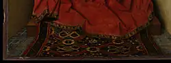- Debido a su rareza, preciosidad y extrañeza percibidas, las alfombras orientales se representaron como un fondo para los santos y las escenas religiosas. Más tarde, la iconografía religiosa fue asumida para personas políticamente poderosas y poder afirmar su estatus.