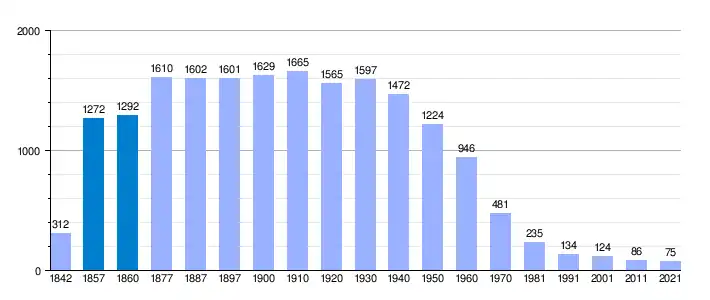 Su población en 2005 era de 115 habitantes, disminuyendo a 104 en 2006, de los cuales 55 eran varones y 49 mujeres, conforme al siguiente detalle: