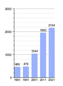 Este municipio ha tenido un crecimiento demográfico inusual en la comunidad autónoma a la que pertenece debido a su cercanía con la capital provincial.