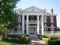 - ↑ «Beautiful Brick Mansion Recently Completed in Westchester Place: Imposing Mansion; New Westchester Place House Fine Example of Italian Brick Work. Grounds Now Being Landscaped». Los Angeles Times. 10 de mayo de 1914.