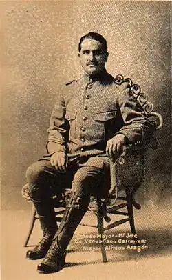 Alfredo Aragón fue un militar mexicano que participó en la Revolución mexicana. Nació en la Ciudad de México en 1885. Alcanzó el grado de teniente coronel constitucionalista y formó parte del Estado Mayor de Venustiano Carranza siendo él uno de sus más allegados, por lo que también tuvo puestos consulares en Francia –Burdeos, Argelia y París-. Fue un Miembro de la Société Astronómique de France, la Société de París, la Internationale d´Histoire de France y la Société de Americanistes de París. Colaboró escribiendo artículos en los periódicos de El Universal y el Globo. En 1906 escribió Scénes de la Révolution Mexicaine. Murió en París en 1936.