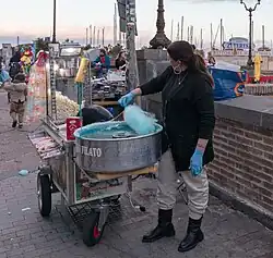 Se prepara usando una máquina especial y se vende normalmente en ferias y otros eventos festivos. El color característico de la golosina es el rosa, aunque también es popular una mezcla de rosa, púrpura y azul. También puede ser completamente blanco (sin colorante).