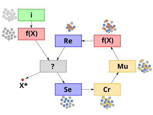 - La Optimización Extrema (EO), a diferencia de los GAs, que trabajan con una población de soluciones candidatas, desarrolla una única solución y realiza modificaciones locales a los peores componentes. Esto requiere que se seleccione una representación adecuada que permita asignar a los componentes de solución individuales una medida de calidad ("aptitud"). El principio de gobierno detrás de este algoritmo es el de la mejora emergente mediante la eliminación selectiva de componentes de baja calidad y su sustitución por un componente seleccionado al azar. Esto está decididamente en desacuerdo con un GA que selecciona buenas soluciones en un intento de hacer mejores soluciones.