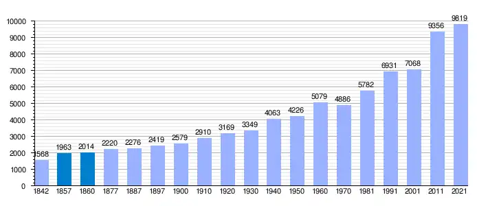 | Gráfica de evolución demográfica de Alguazas[6] entre 1842 y 2021 |