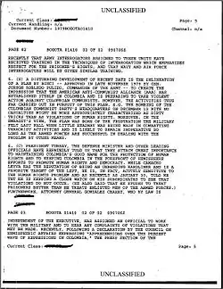 - ↑ «Documentos desclasificados Embajada de EEUU en Colombia».