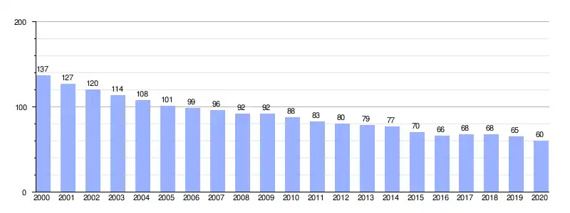 | Gráfica de evolución demográfica de Alienes[2] entre 2000 y 2020 |