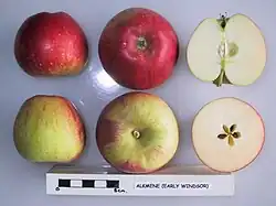 'Alkmene' es una variedad de manzana, híbrido del cruce como Parental-Madre de Cox's Orange Pippin x polen como Parental-Padre Geheimrat Doktor Oldenburg. Criado por M. Schmidt y H. Murawski en el Kaiser-Wilhelm-Institut für Züchtungsforschung en Müncheberg, Brandeburgo Alemania. Introducido en los circuitos comerciales en 1962. Fue rebautizado como Early Windsor a mediados de la década de 1990 con fines de marketing.[5][6]