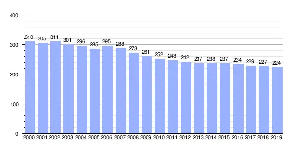 | Gráfica de evolución demográfica de Allones entre 2000 y 2019 |
