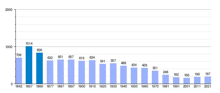 | Gráfica de evolución demográfica de Almócita[5] entre 1842 y 2021 |