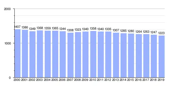 Gráfica de evolución demográfica de Almeiras entre 2000 y 2019