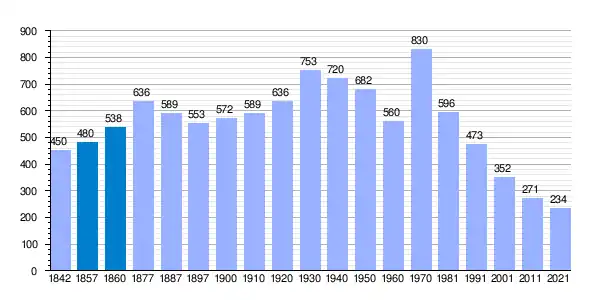 Gráfica de evolución demográfica de Almenar de Soria[4]​ entre 1842 y 2021
