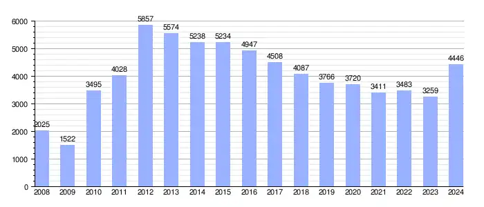 | Gráfica de evolución de la deuda viva del Ayuntamiento de Almodóvar del Río entre 2008 y 2024 |