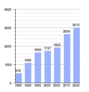 | Gráfica de evolución demográfica de Almoloya entre 1980 y 2020 |