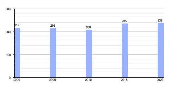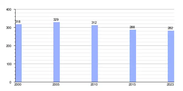 | Gráfica de evolución demográfica de Alongos (lugar) entre 2000 y 2023 |