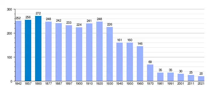 | Gráfica de evolución demográfica de Alpeñés[3] entre 1842 y 2021 |