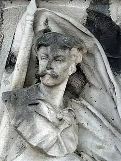 - Enterrado en París, en el cementerio de Montmartre (23.ª división), el monumento funerario del pintor, también esculpido por Francis de Saint-Vidal en 1894, representa la puerta del cementerio de Saint-Privat tal como aparece en el cuadro que había pintado Neuville.