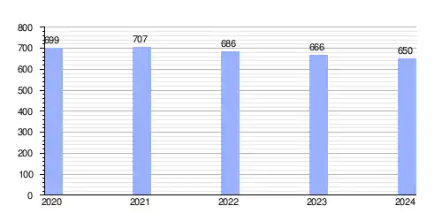 Hasta 2024 la población era de 650 habitantes,[2] con una densidad de población de 94,75 hab/km².[2]